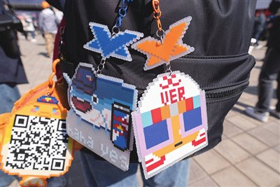 年轻人自制的拼豆挂件。